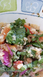 1 Cebola roxa processada com sal e 2 colheres de chá de vinagre de arroz, salsa e manjericão zatar